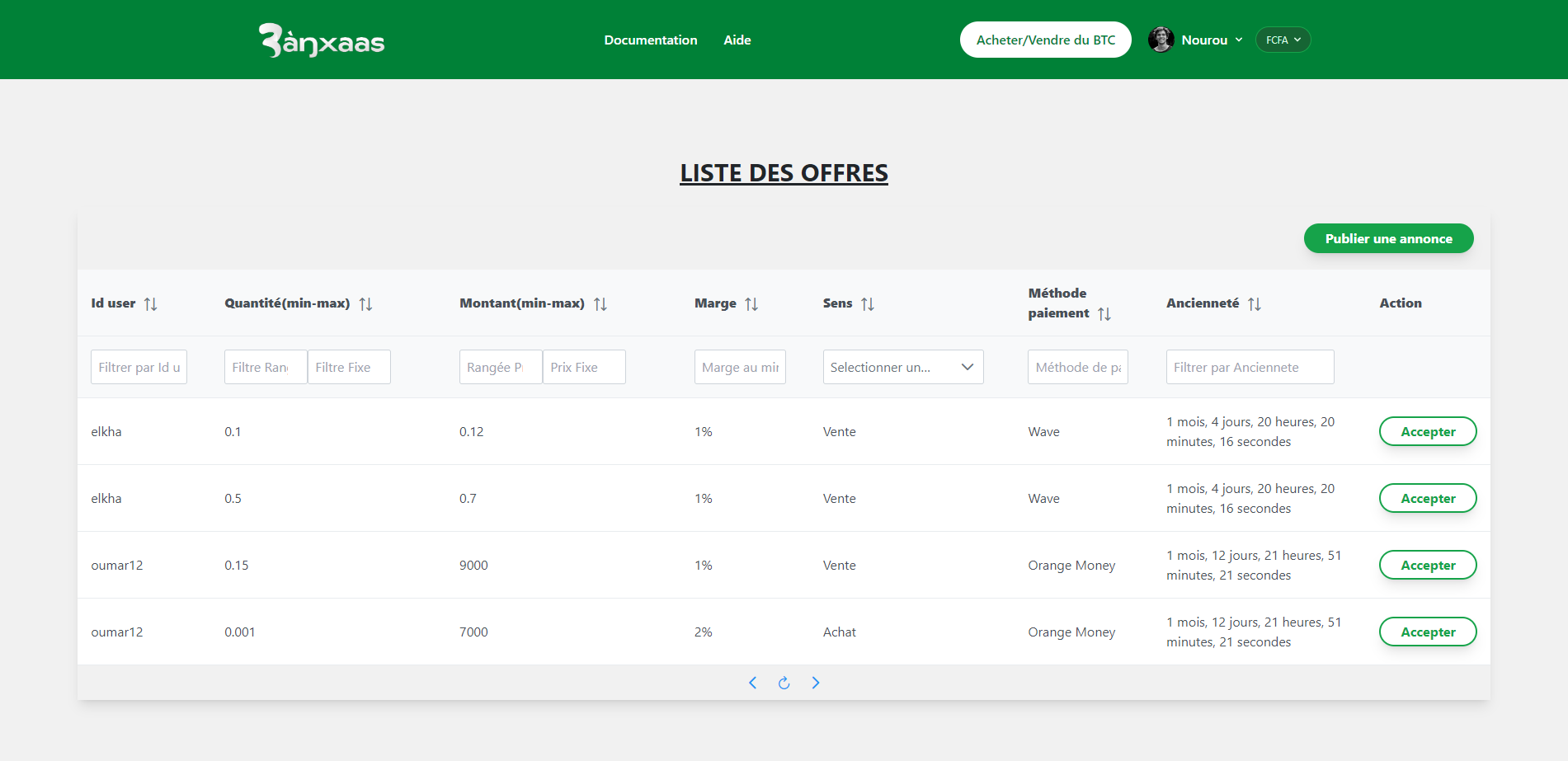 Now, the user has access to multiple screens, from changing its profil info, to seeing offers, to creating its own trade.
