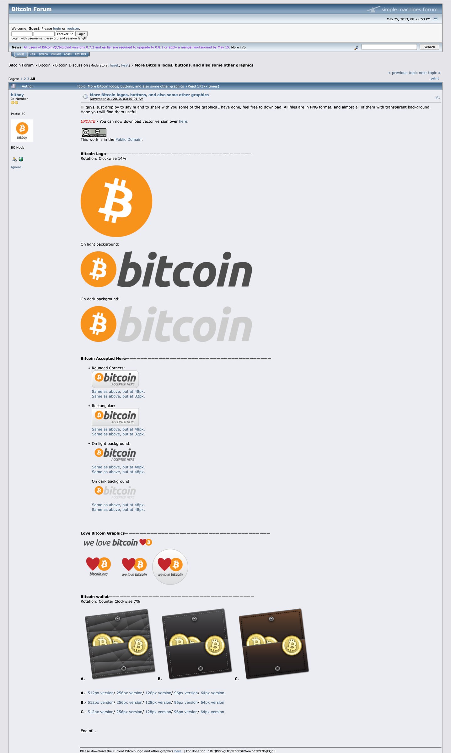 On this day in 2010, an unknown artist under the handle "bitboy" (not the one you're thinking about) shares one of the best brand images of all time for free on the Bitcointalk forum. You can view the post here. Or below better, as still having found a screenshot!