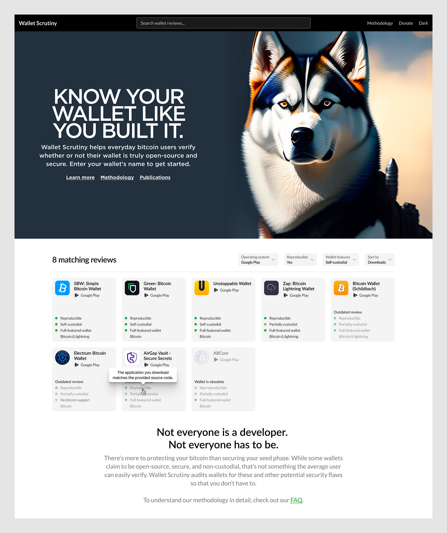 For Wallet Scrutiny, the design work on the wallet page an expert options has arrived at a detail level, meaning we can finalize specs and get them ready for development. I’ll have to schedule that in, potentially next week.