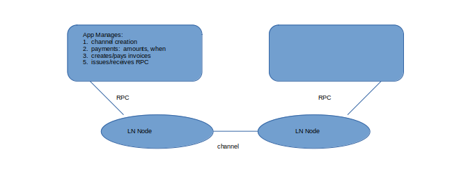 An application that manages this type of relationship through the LN network is intriguing (at least to me!). At a high level it would be this: Essentially the app would handle the basic terms of a contract and manage that contract through a LN channel via RPC.