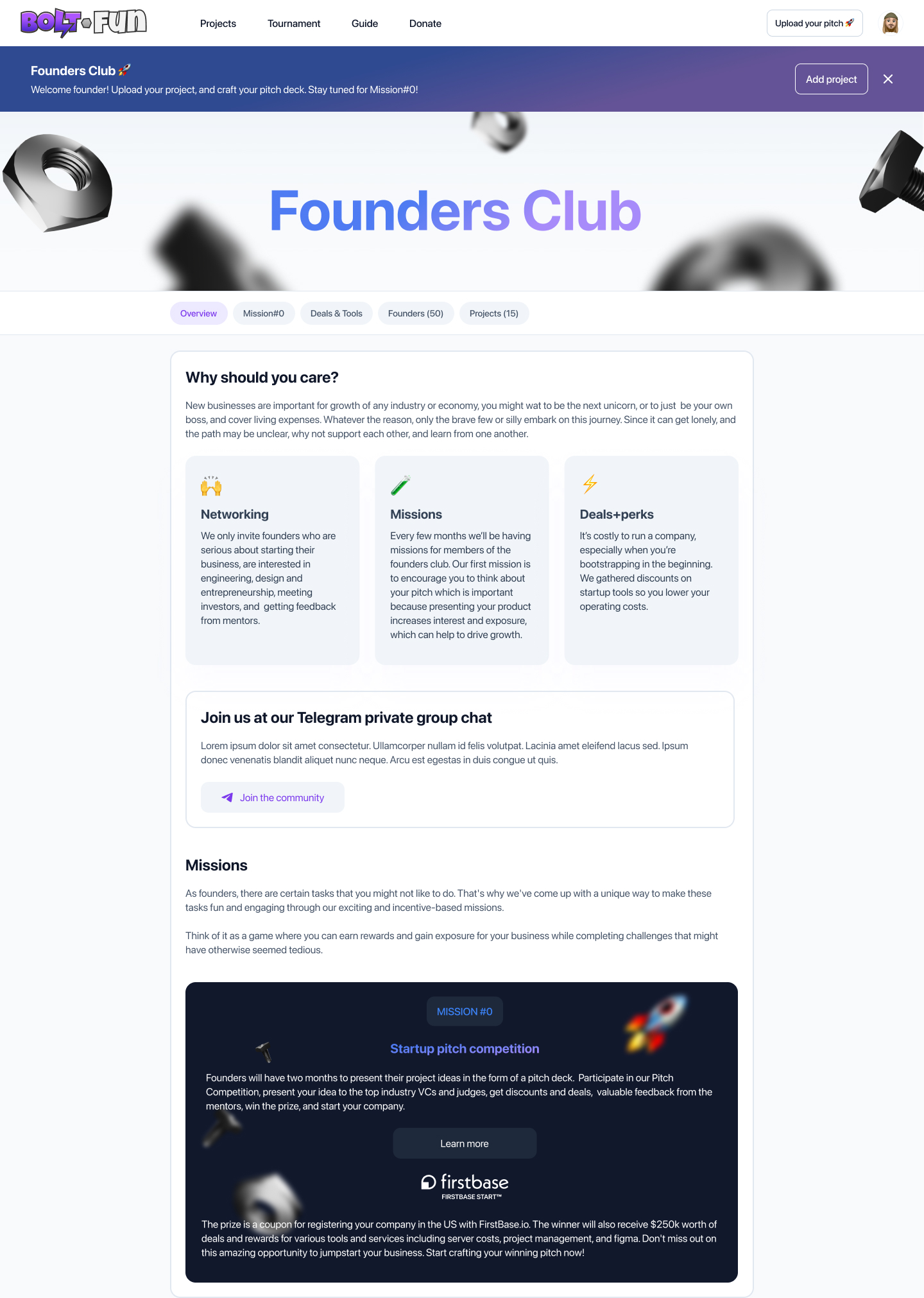 Today I worked on the Project page of Founders Club. I focused on solving the problem of putting pitches in the spotlight of discussion, and not just the projects. I also made some changes to the pitch deck window and designed a few banners indicating progress or action suggestions.