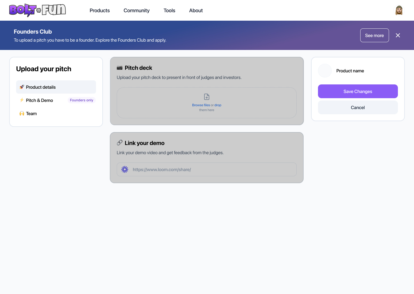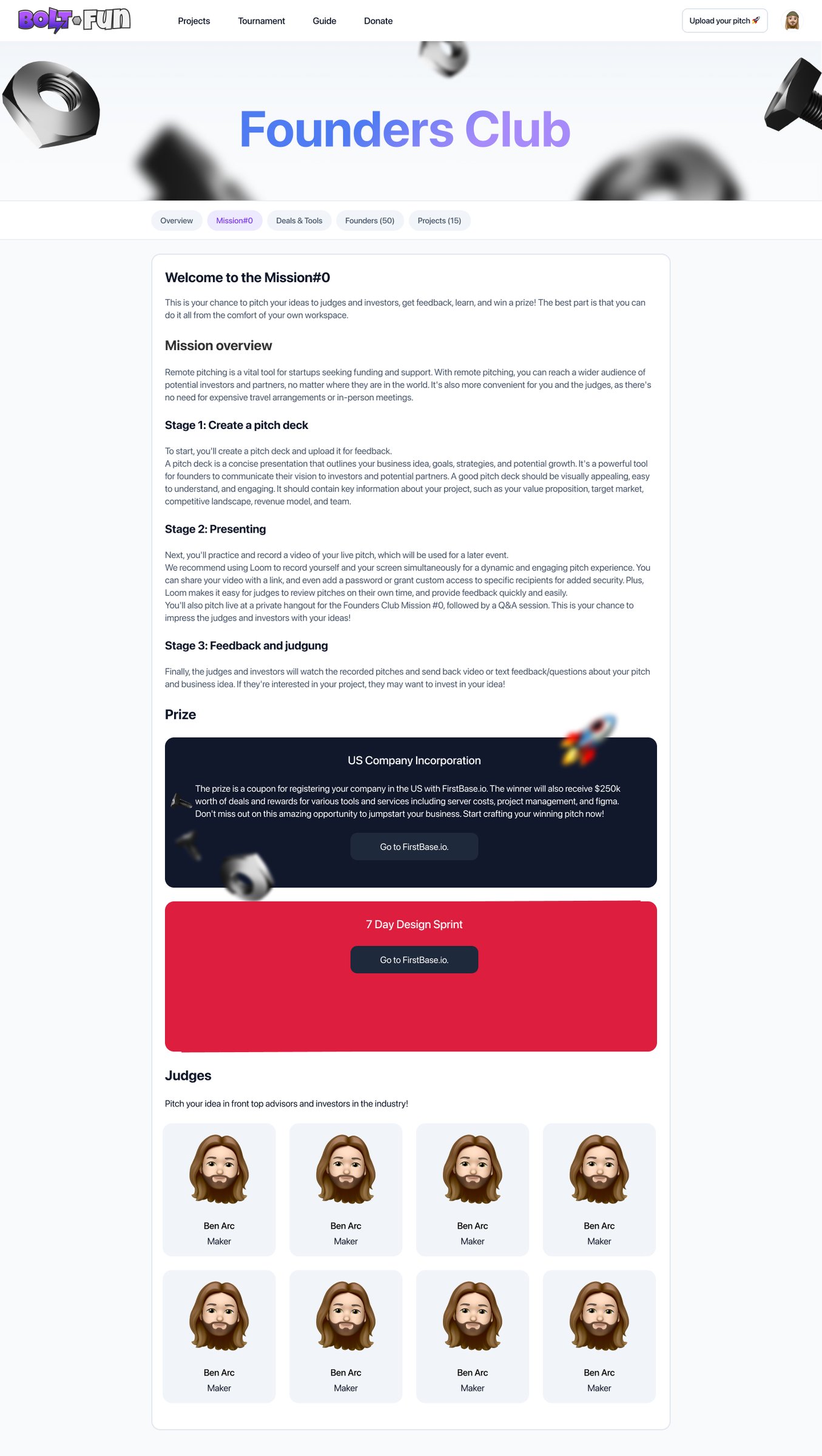 Challenges: Promote the makers who are not a part of the founders club on the Pitch & demo page to apply if they want to participate. Clear identification of visible components on the Project page.