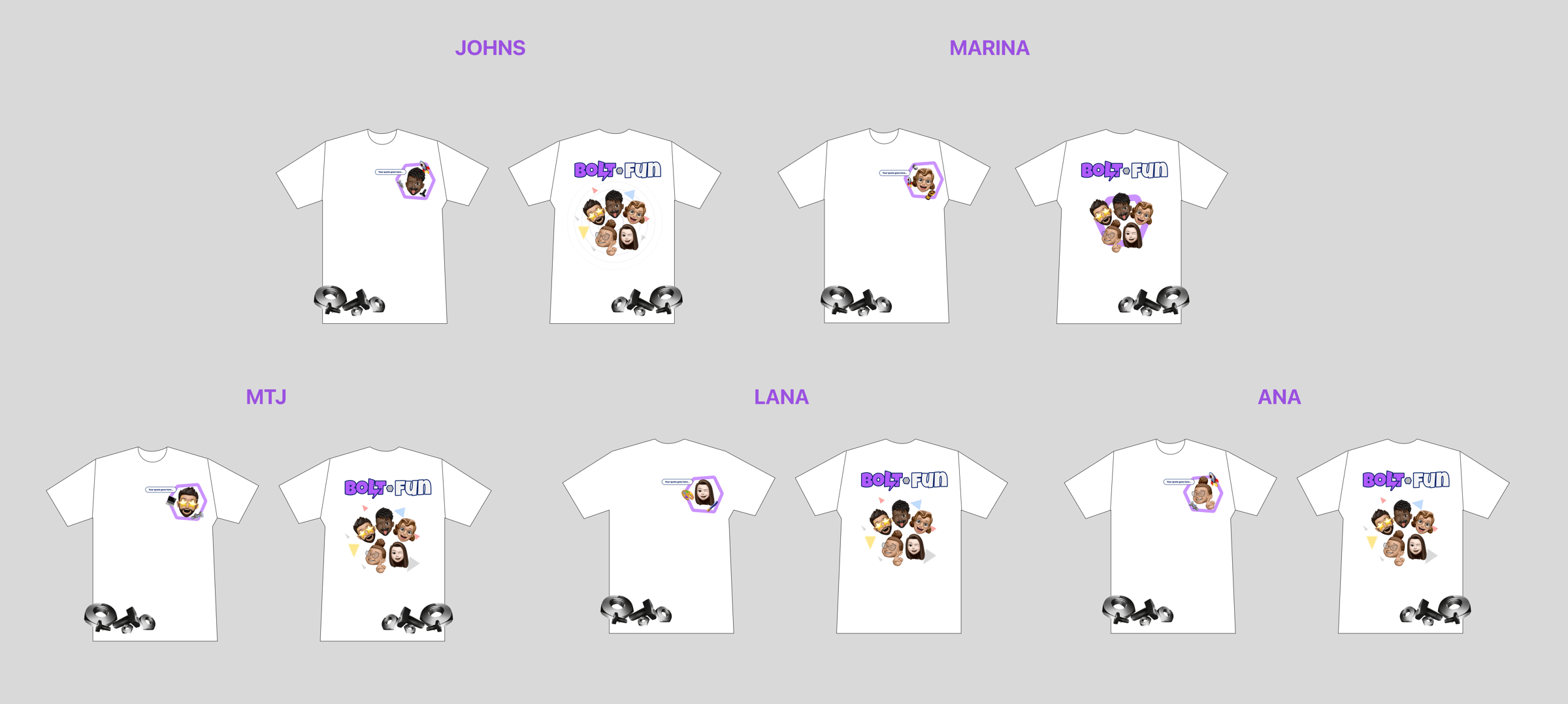 The main challenge was to generate backgrounds and imageries for the hackathon, using Midjourney and other AI tools. We established the overall concept which was very exciting, and in the process, we conducted research and looked for existing models that represent the visual style and feel of the brand. To create the BOLT.FUN merch, I used different elements like emojis, bolts, and colors that represent BOLT.FUN and our story. The most challenging part was to emulate the feeling of our community and unity for Maker t-shirt designs. I designed the team t-shirts with a different, more personalized approach for every team member, so we conducted a small survey to tell us more about our team members.