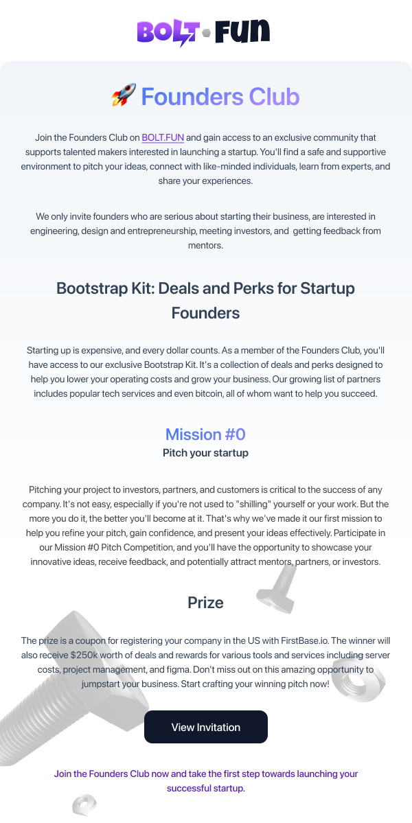 Plans: I plan to redesign the email templates and improve the invitations and applications process for the Founders Club while continuing to refine and develop my UX UI design skills.