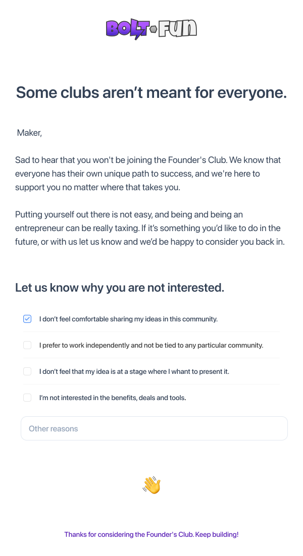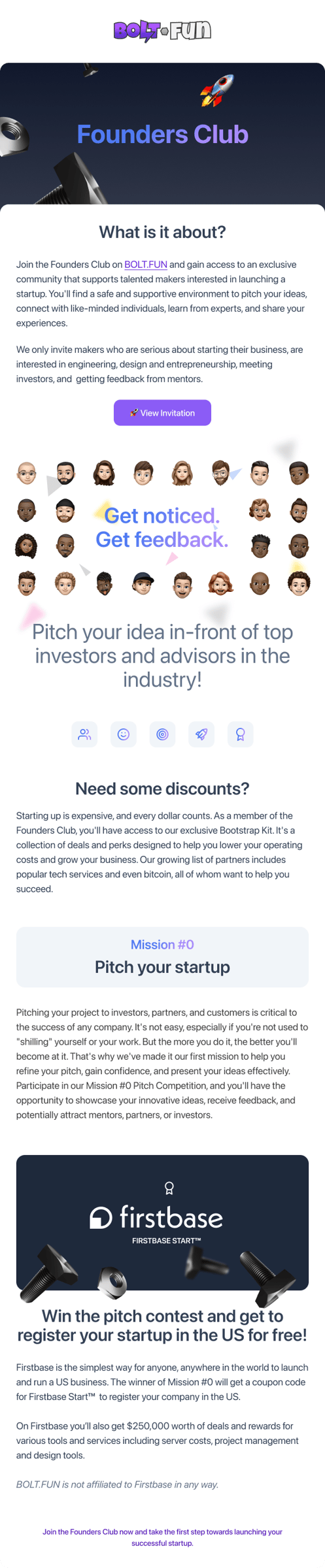 Progress: Through research, I learned best practices for making transactional emails and creating content in this format. I researched how to catch the attention of the users, making them recognize the benefits of the Founders Club community and accept invitations.