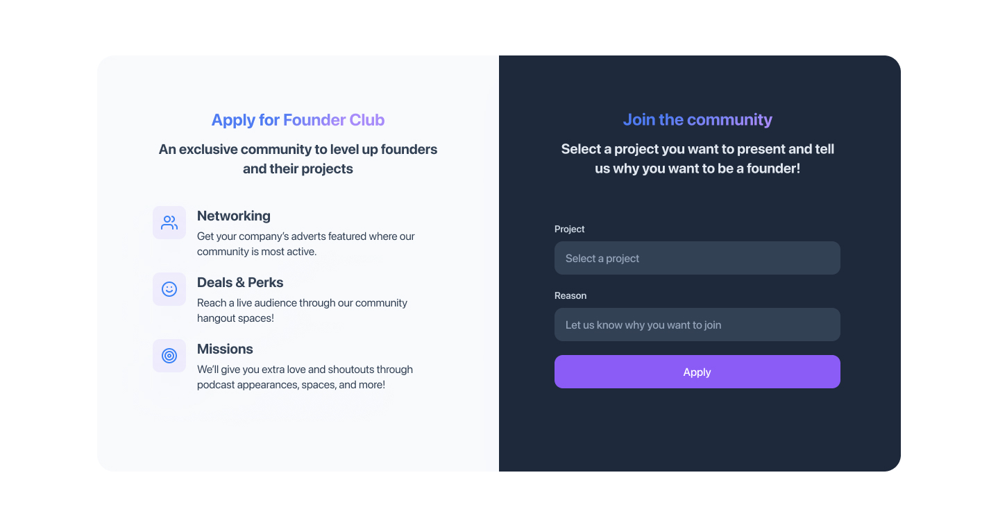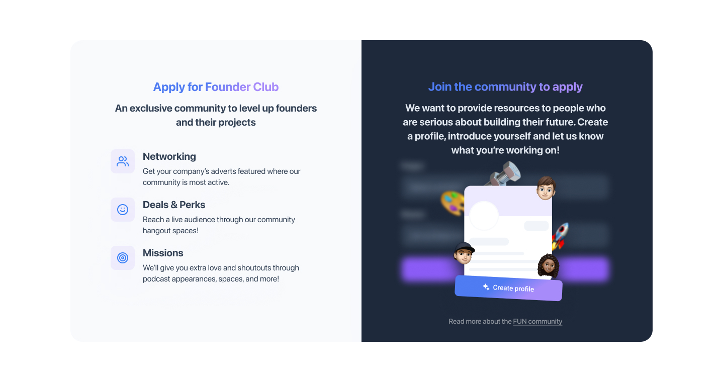 Problems: One of the challenges I faced today was creating small animations of UI elements to create more distinctive graphics. I also had to set up a new page layout for the Founders Club Deals & tools.