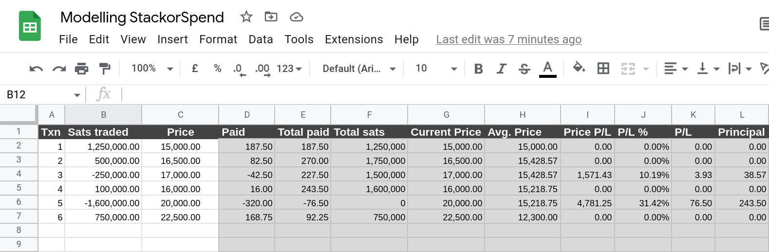 Alongside simply modeling my transactions data schema, I also started exploring what some of the calculations would look like to calculate the profit/loss and current stack cost price for each new transaction.