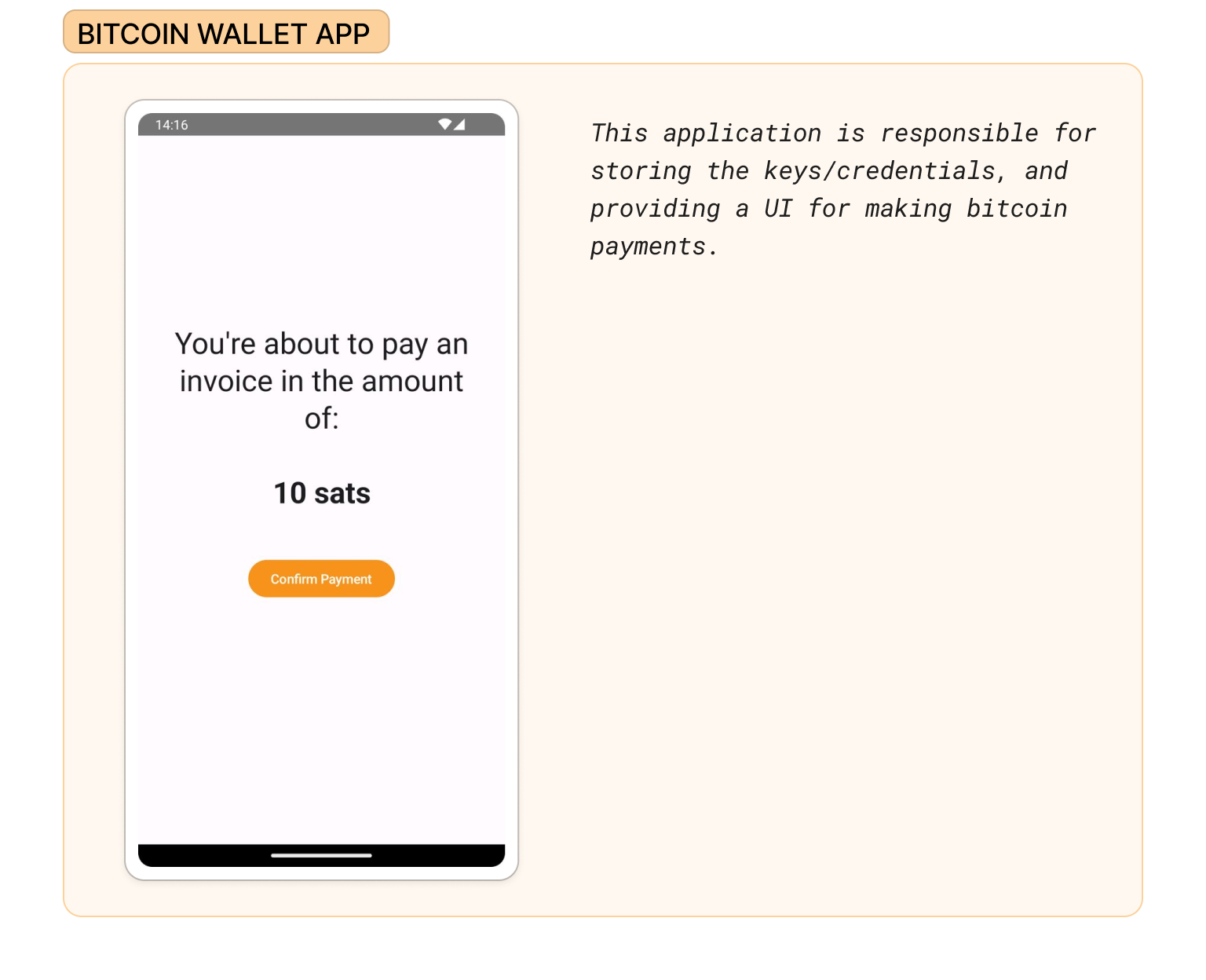 The workflow starts with a Service Provider App(game, streaming service app, etc.) generating a lightning invoice for its users. Upon generating the invoice, Service Provider App enables a button that, when clicked, launches a Bitcoin Wallet App where the payment will be made. When the payment is confirmed and the invoice is paid, users are sent back to the Service Provider App where they came from.
