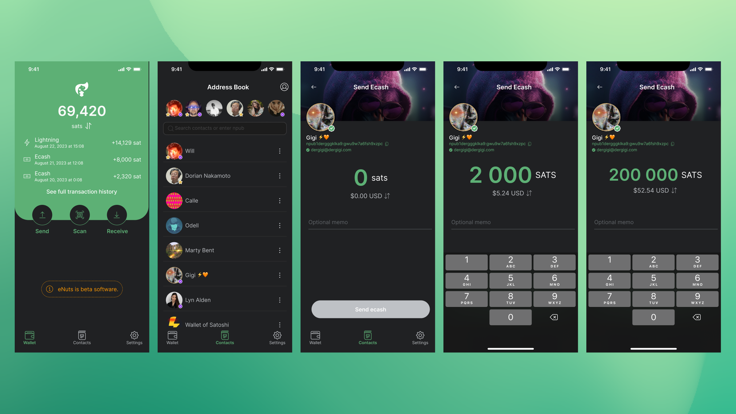 Hey all, check out initial version of the UI for the eNuts x Nostr integration. Below is an example illustrating the user flow: navigating to the contact list, selecting a contact, and sending ecash directly to their npub.