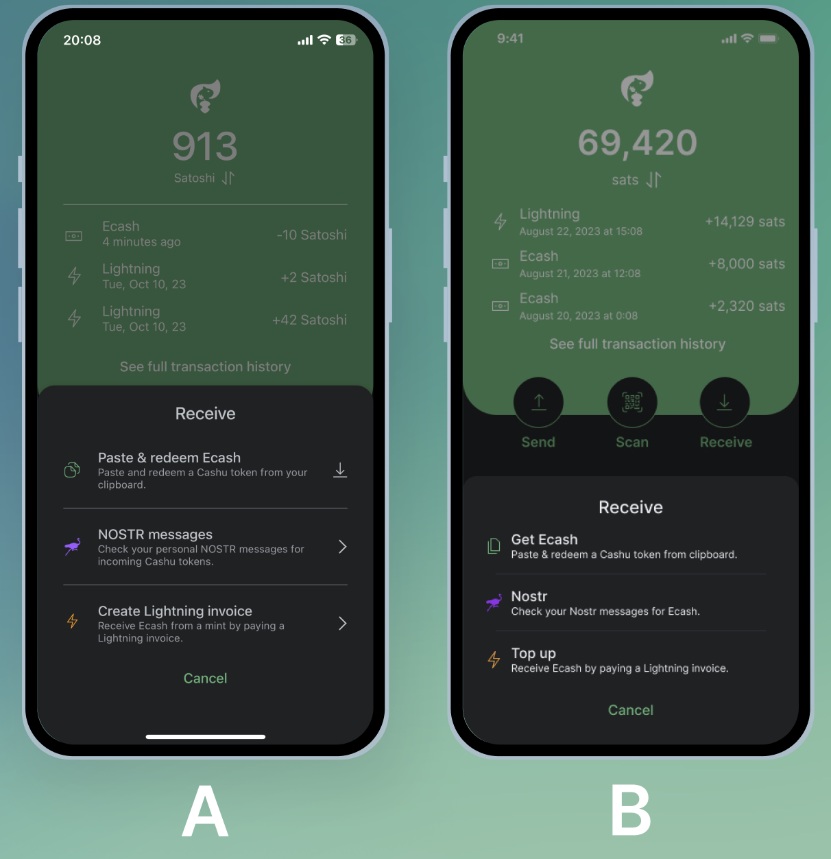 While week 1 was all about the UN and UI of sending ecash on Nostr, we realized we've got to make receiving or redeeming ecash on Nostr just as smooth. Last week, we threw out a question about the copy users see when they hit the 'receive' button in eNuts.