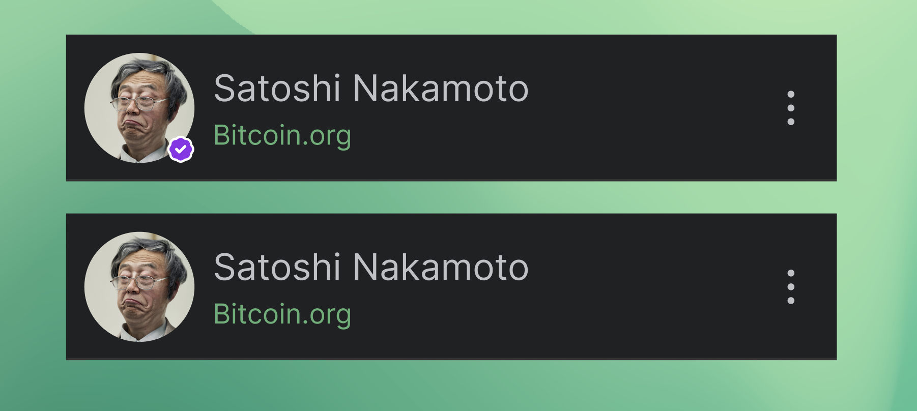 We've been deep in the trenches, fine-tuning our Nostr integration. Week one was a whirlwind with tons of insights, especially a gold nugget from Christoph of the Bitcoin Design community. He pointed us to Nostr's guide on imposter prevention: Nostr Design Guide. Taking a cue from that, we decided to ditch the checkmark from user profiles and keep just the NIP 05 URL.