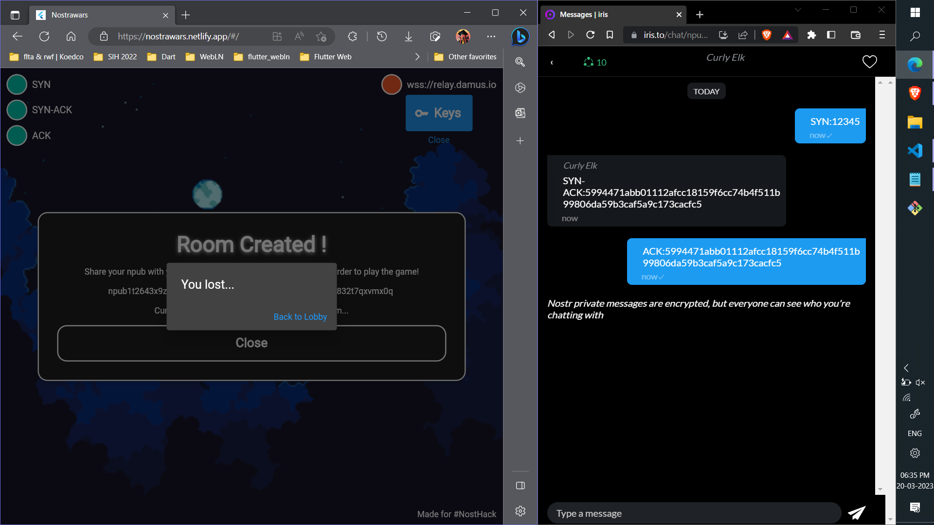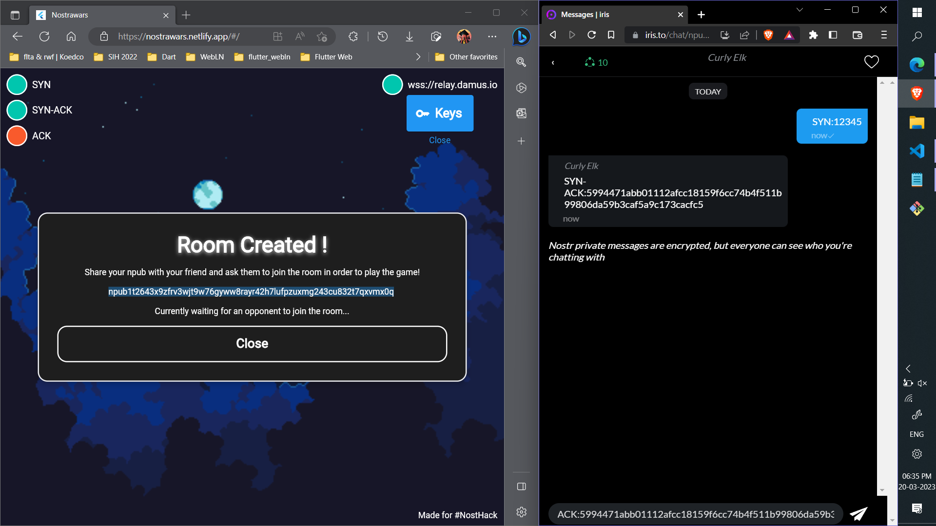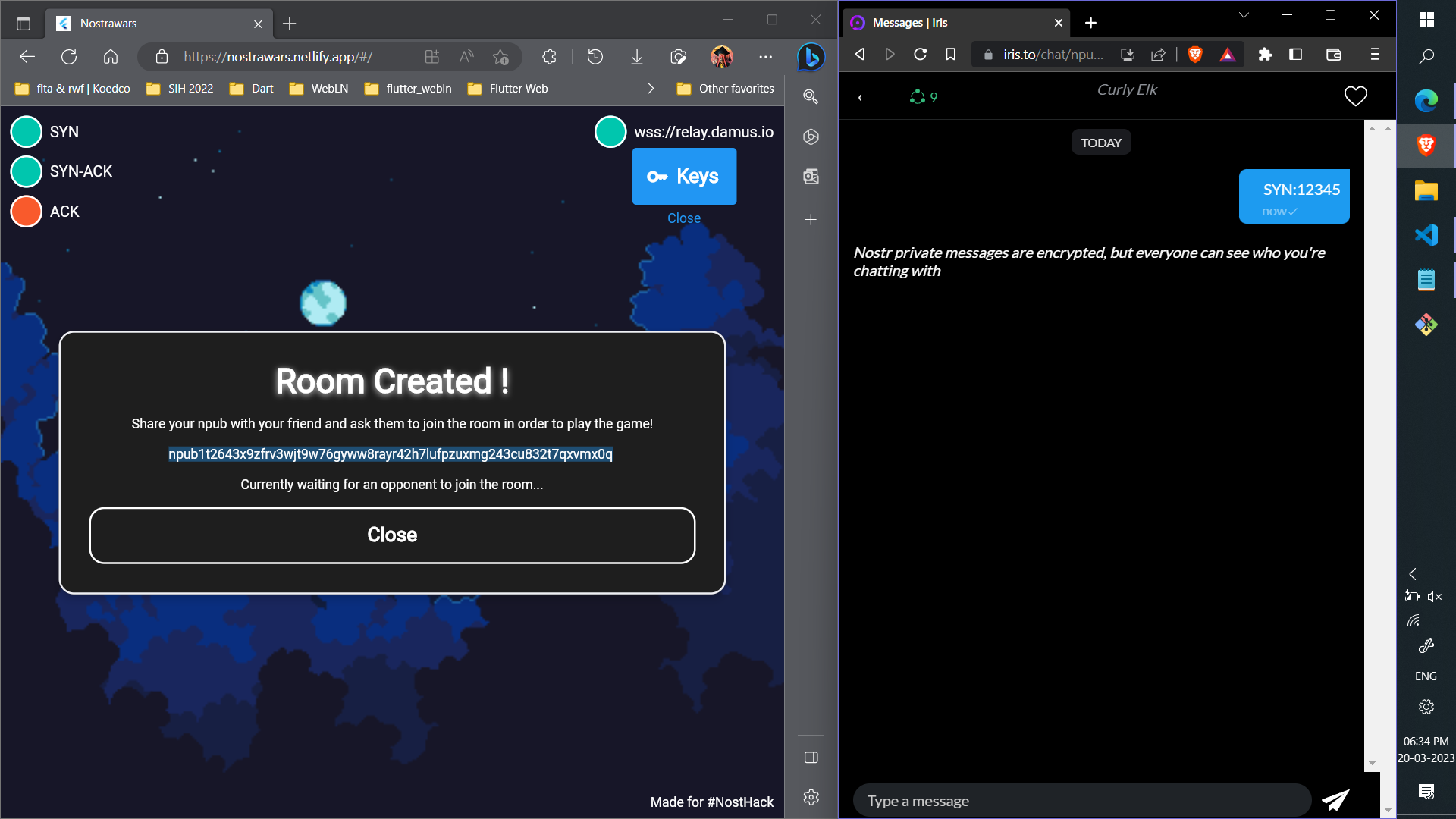 So here I created a custom three-way handshake algorithm for the game before starting it. This ensures that both players are connected to the same relays and that their connection is secure and safe to pass the game stats messages further.