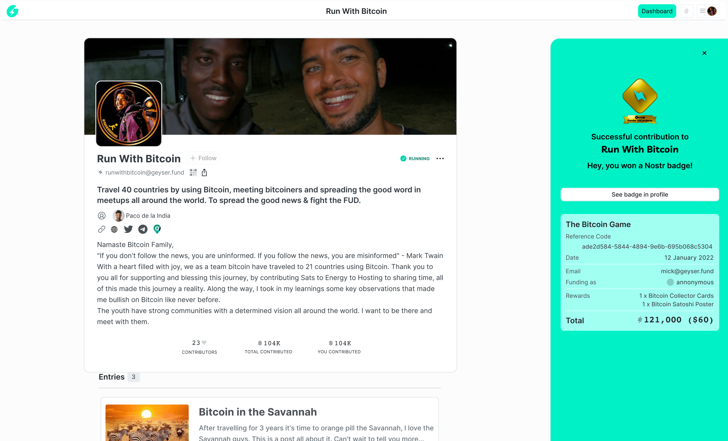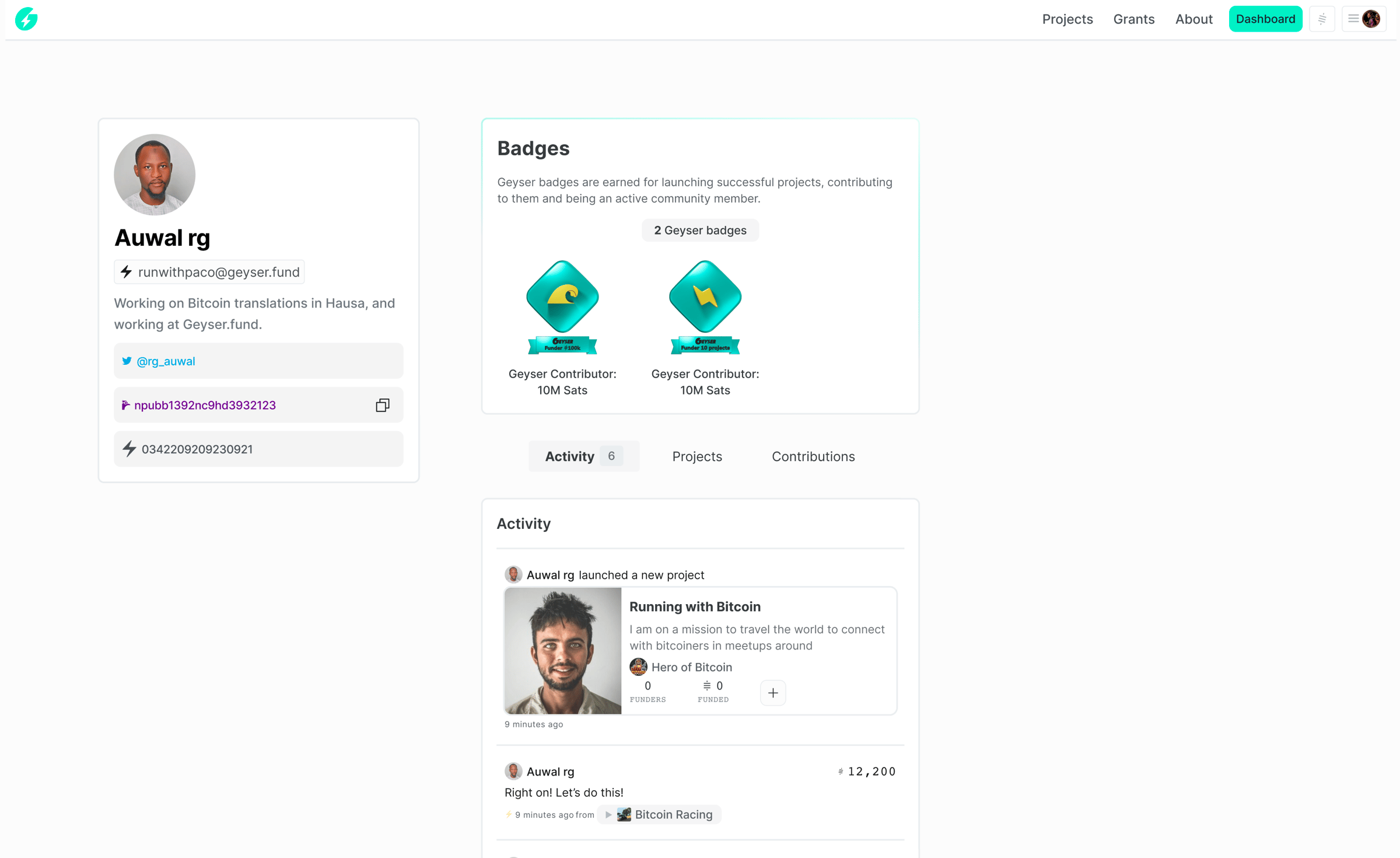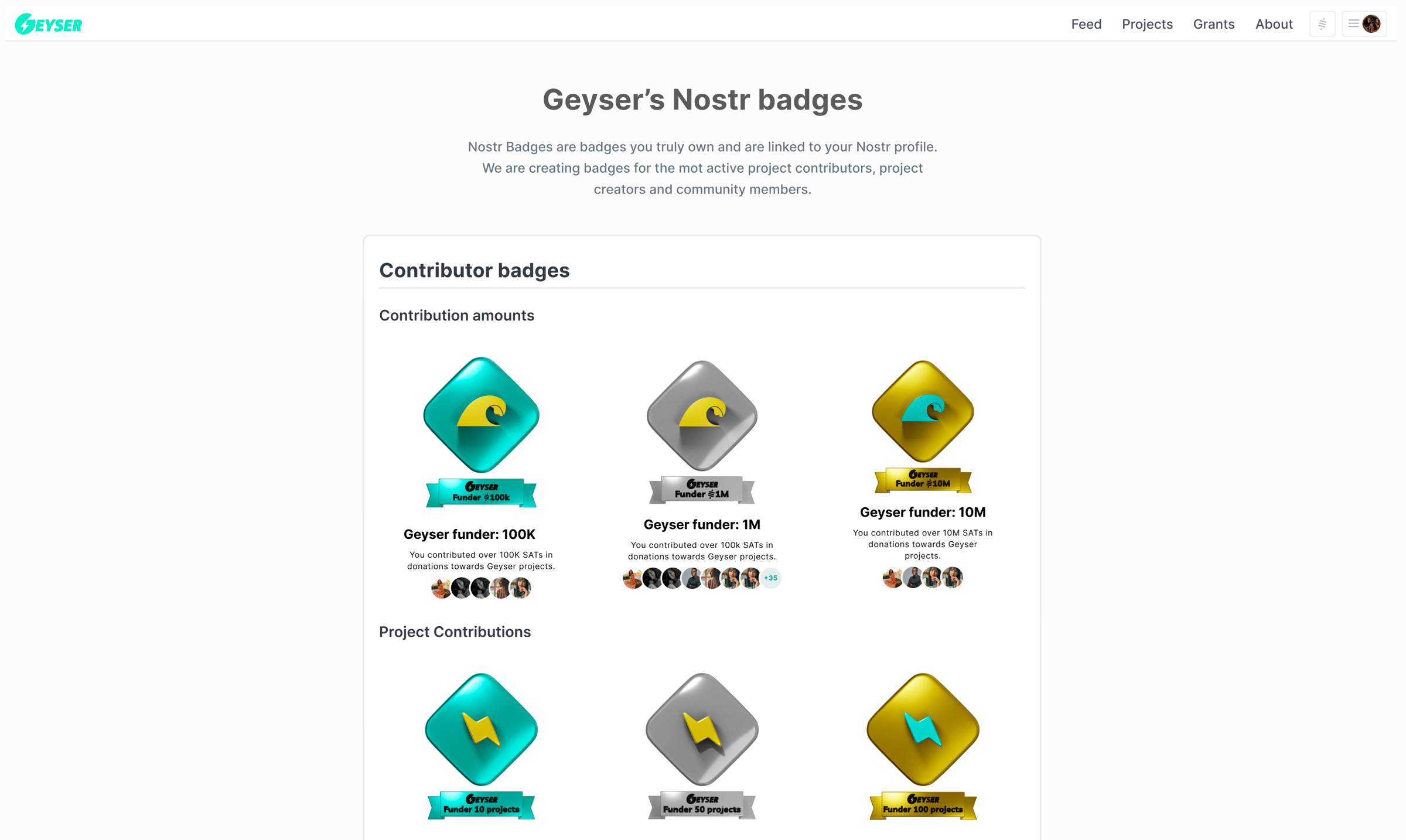 Earn Geyser badges for contributions, engagement of activity. Including: