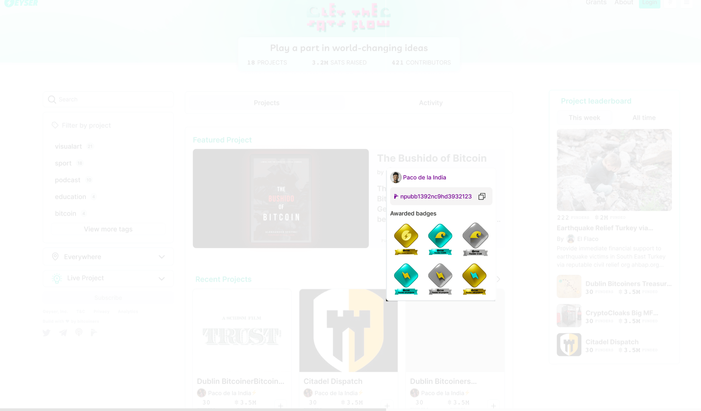 Bitcoiners care a lot about bitcoin projects and initiatives, you can see this based on how much and how often they fund them on Geyser: