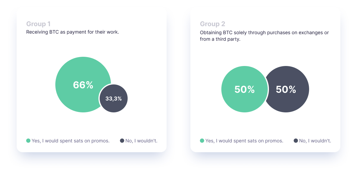 Less than 20% of the respondents would be willing to spend their sats on promos.