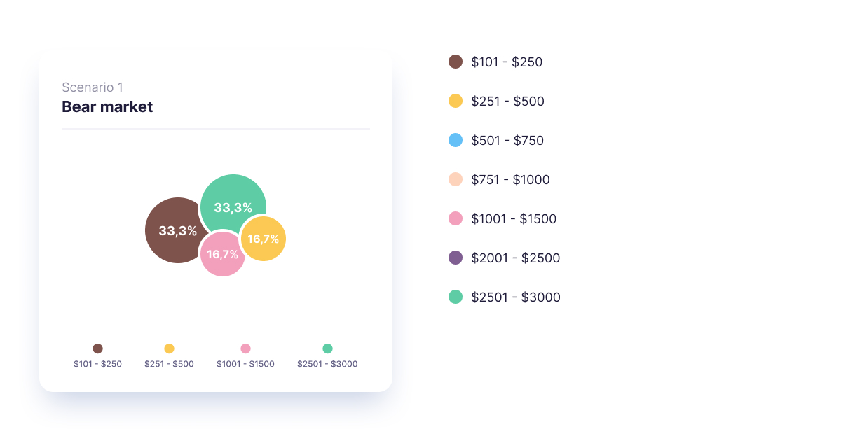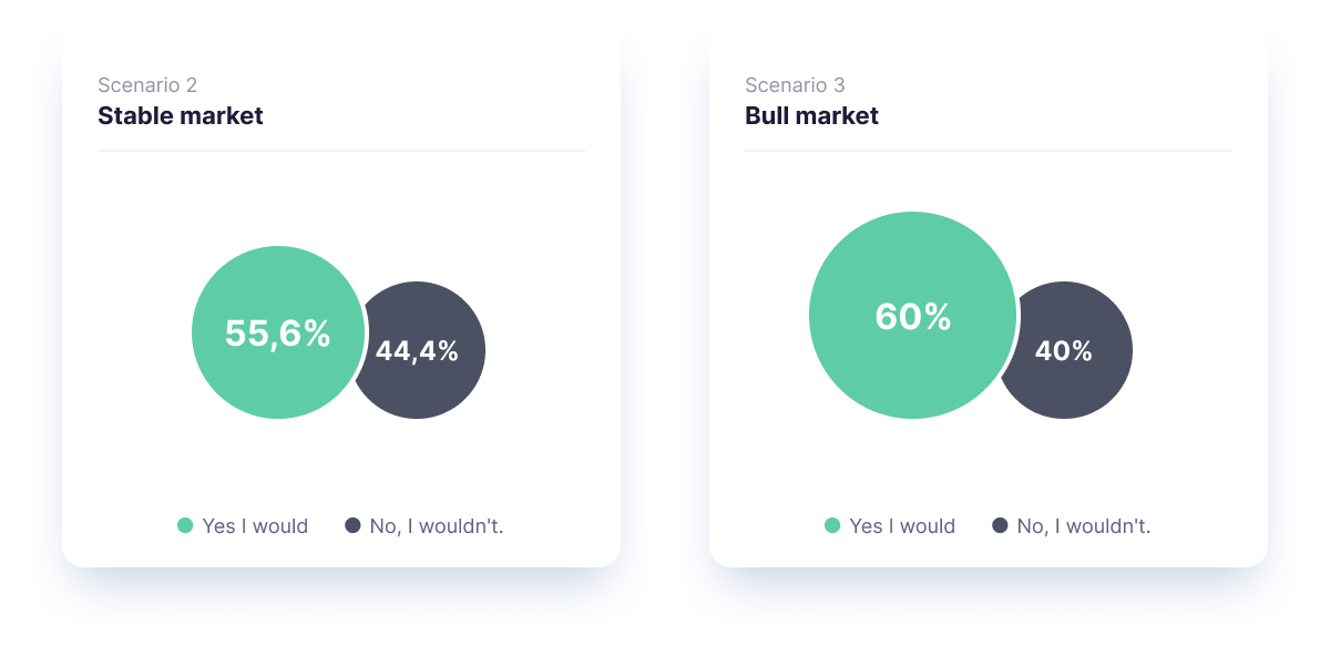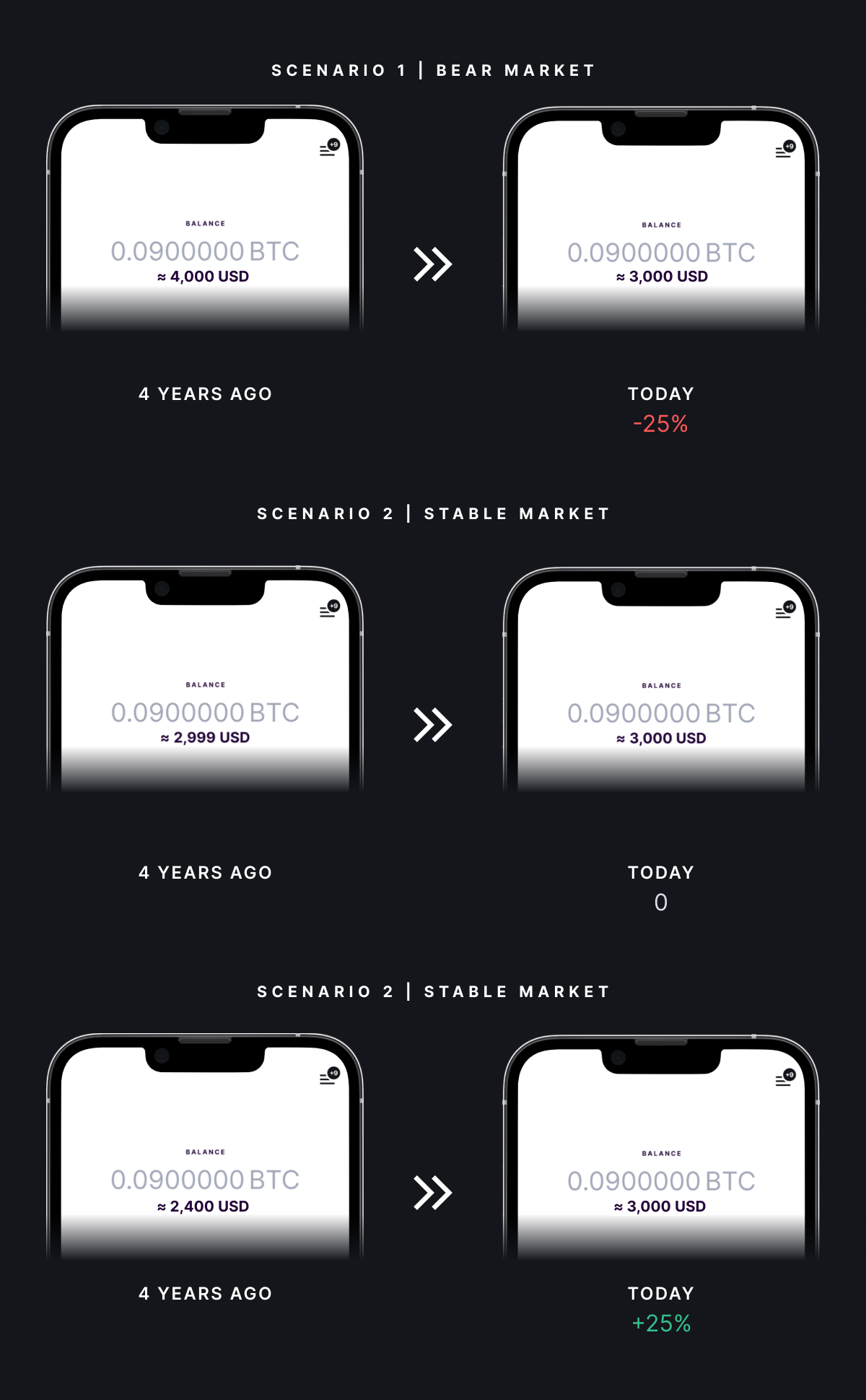We asked the participants to imagine that four years ago, they acquired some BTC that today, has a value of $3000. We divided these respondents into three groups and assigned a different scenario to each group.