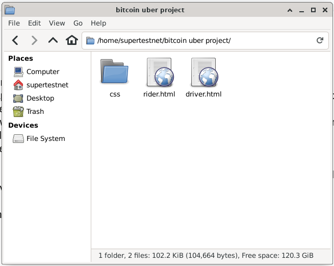 My first step was to create a directory called “bitcoin uber project.” Inside it I created a file called rider.html and gave it the skeleton of an html page:
