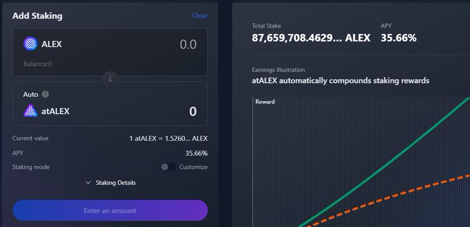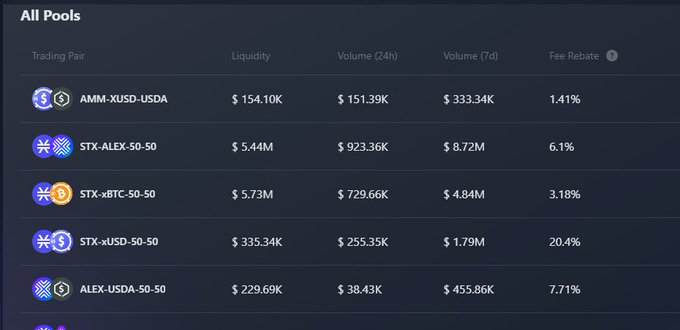 Here you can do whatever you want, swap, add liquidity to a pool or buy $ALEX and stake it at 35%, not bad. Remember that each transaction takes time, put high fees instead of standard ones, they don't reach 1 cent on the dollar.