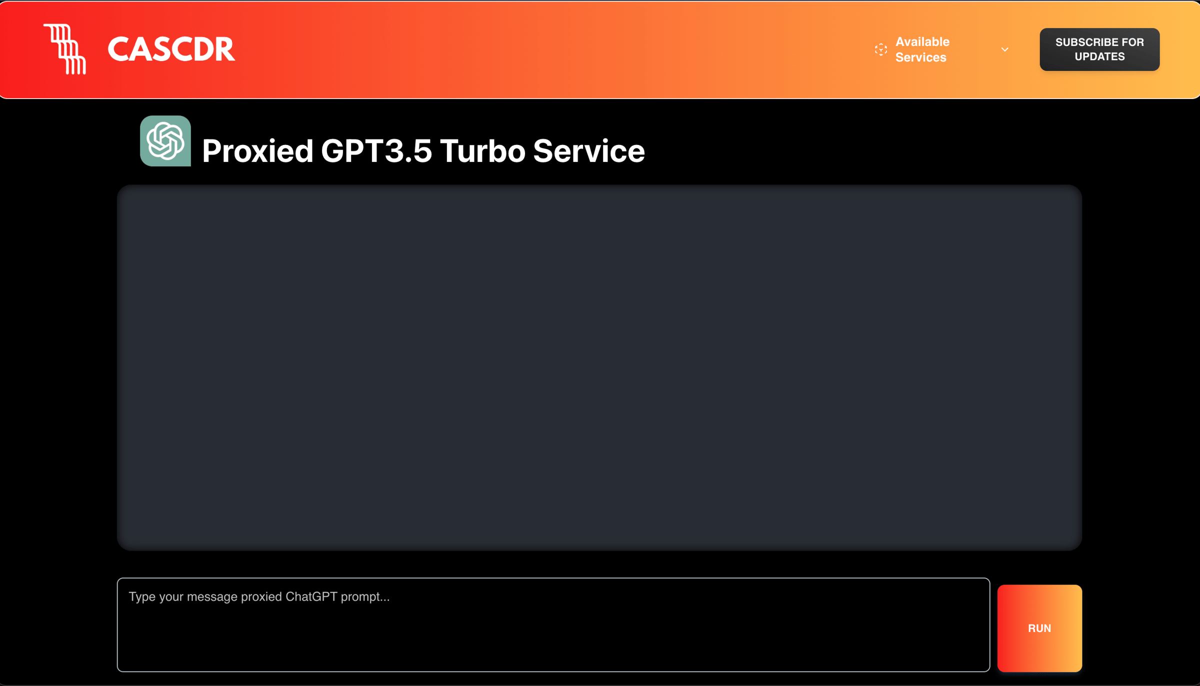 Additionally, CASCDR allows users to consume services individually. For example users can consume ChatGPT services anonymously without a credit card subscription: