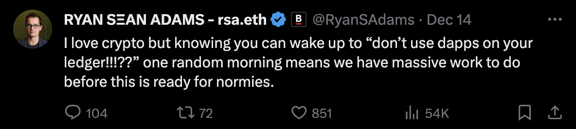 Security Vulnerability in Ledger's ConnectKit: Ledger's Connect Kit, a JavaScript library that allows decentralized applications to connect to Ledger hardware wallets, was compromised due to a phishing attack. An unauthorized party uploaded a malicious file, leading to the theft of over $650,000 in crypto tokens. The attack was addressed within 40 minutes of its discovery, but the incident raises questions about Ledger's security measures and the distribution method of Connect Kit.