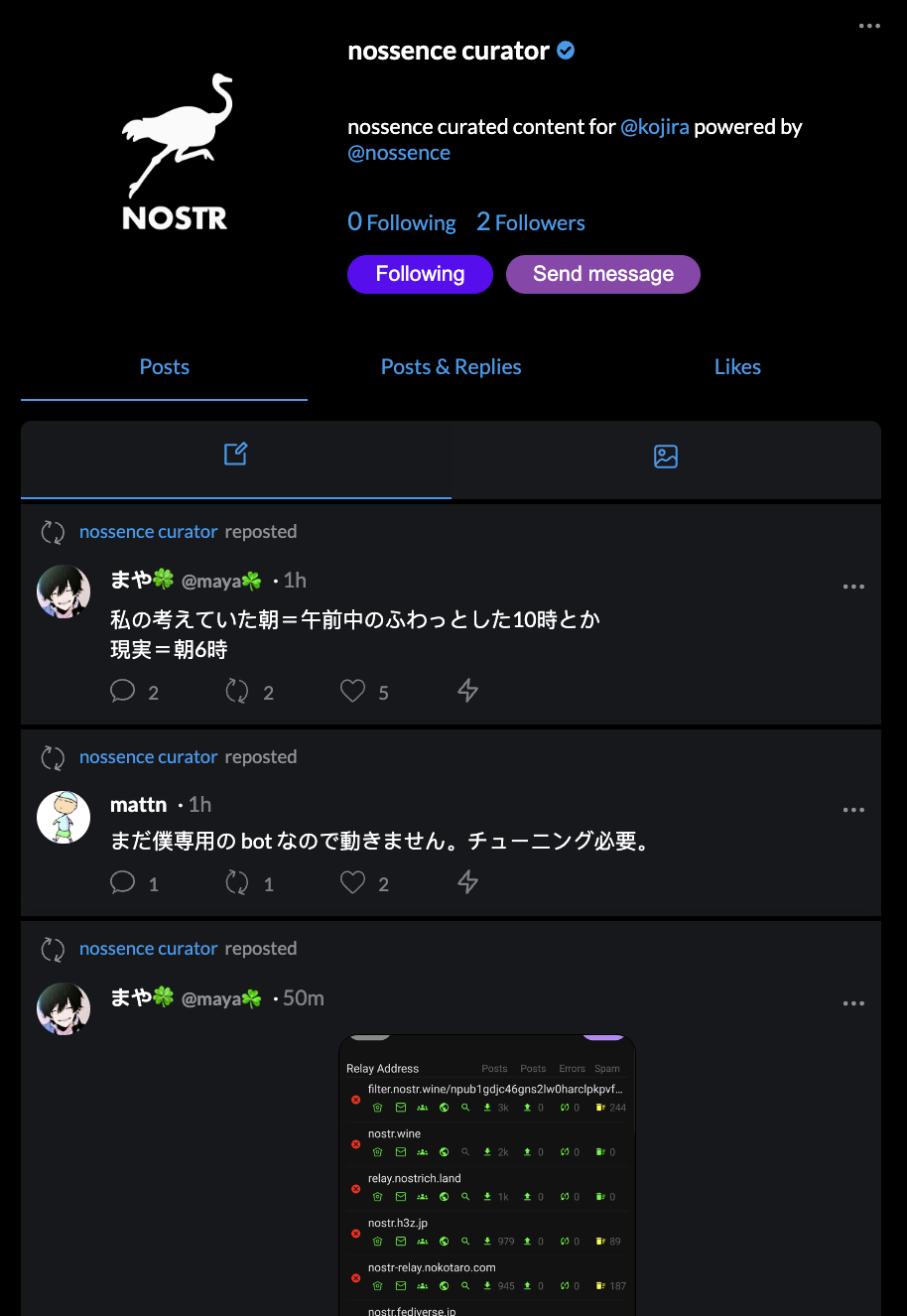 Nossence is a recommender engine that promotes valuable content to their best audiences. Whether a seasoned user of nostr or a new user just getting started, nossence can help them discover and explore interesting and relevant content.
