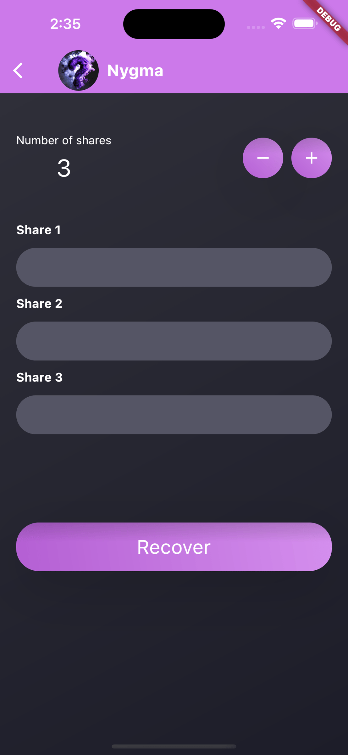 Tell the app how many pieces you received from your contacts, for example 4. You only need to enter the minimum of pieces required for the recovery to work. If you have less than the minimum you indicated during backup, the recovery will fail.