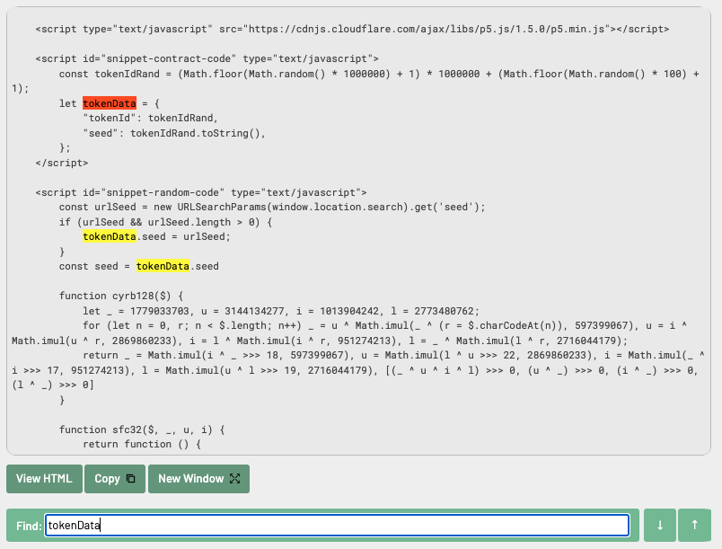 Once you’ve found your inscription, you can then search inside it with a familiar ‘Find’ experience to look for specific text. Here’s an example of looking through some HTML code of an inscription: