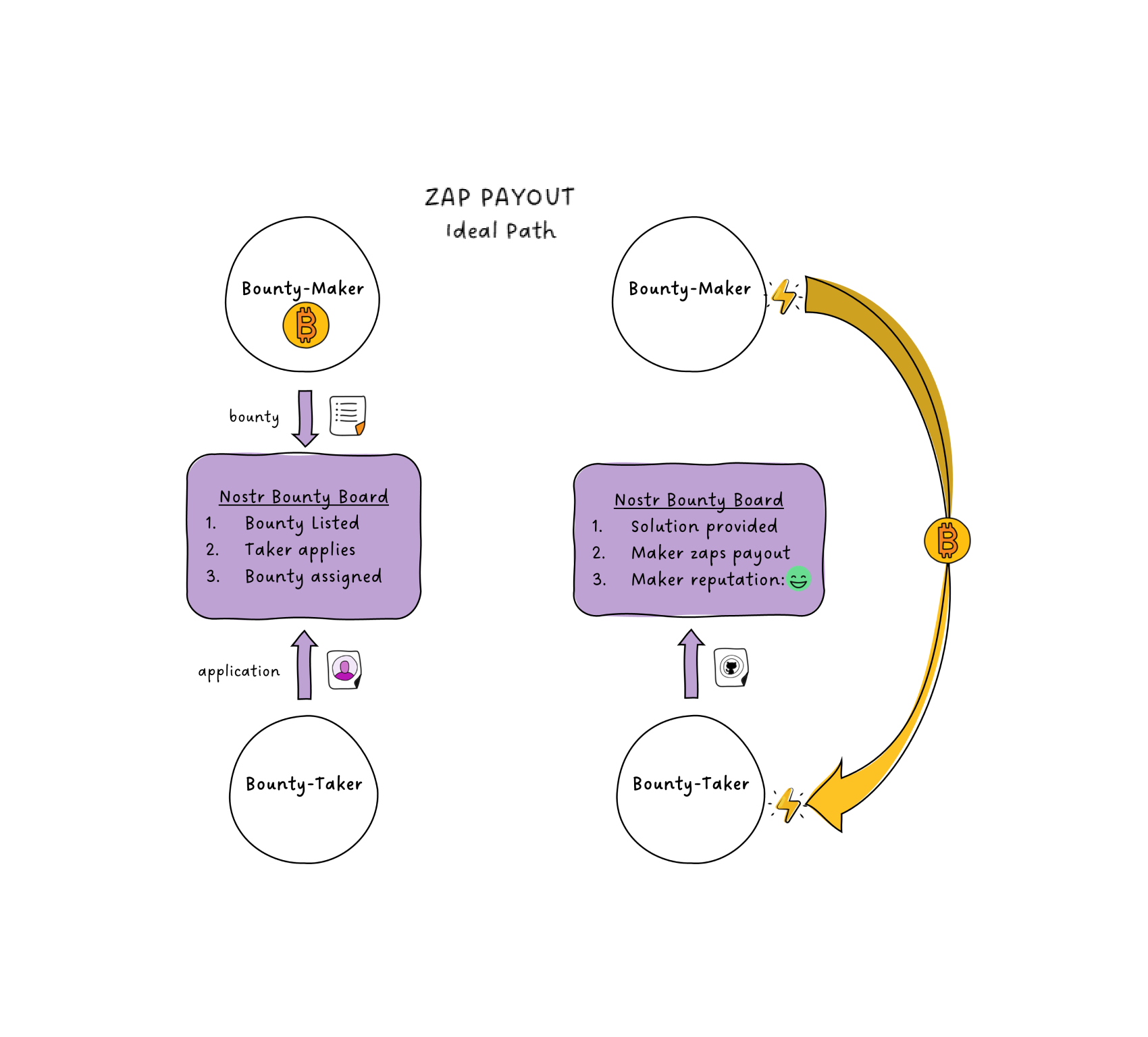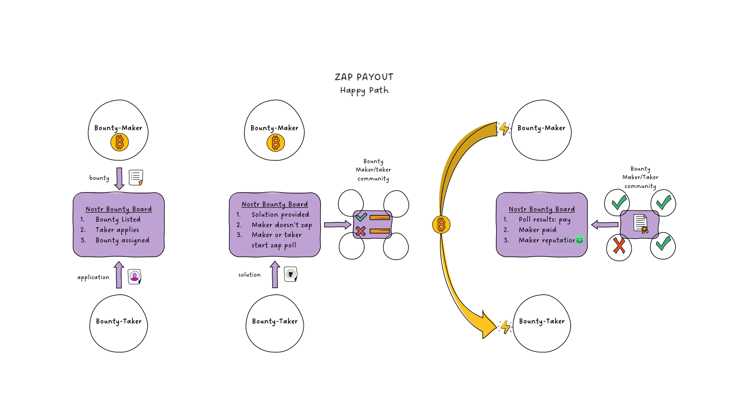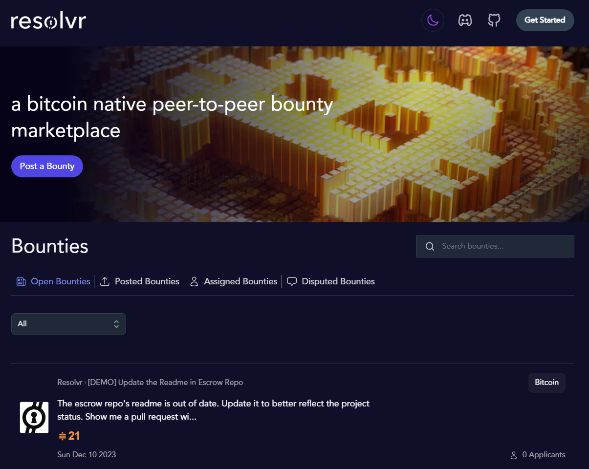 The desktop client will allow Makers and Takers to post, apply and assign bounties just like the web client. But it will also create and broadcast DLC🔮 escrow contracts. In the event of a dispute, the Resolvr oracle will attest to the results of the crowdsourced zap poll to release the funds to the winning party.