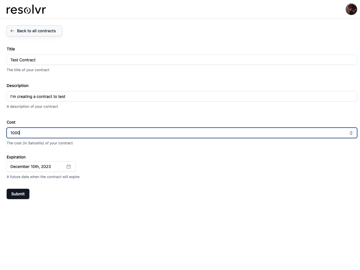 In the future, Resolvr will allow Makers and Takers to select their own oracles, and communities can be listed as "review association" oracles, earning bitcoin for resolving disputes over bounties (think: foundations, hackerspaces, bitdev meetup groups).