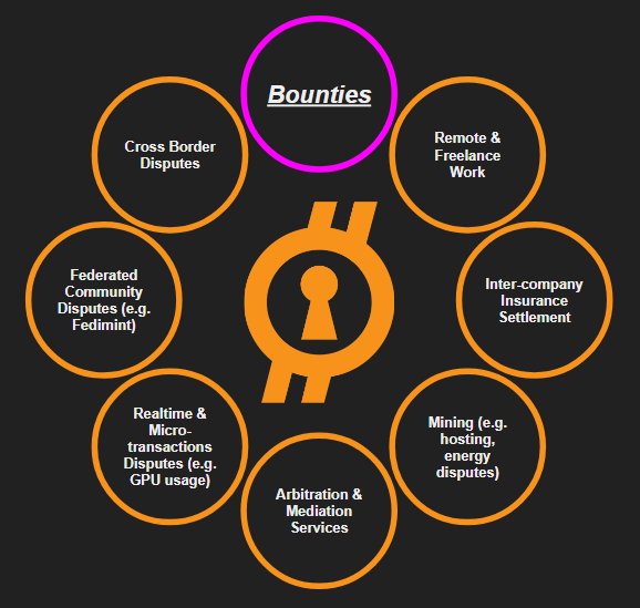 limiting discretion of bounty grantors through reputational stakes and a Bitcoin (₿) escrow powered by Discreet Log Contracts🔮,