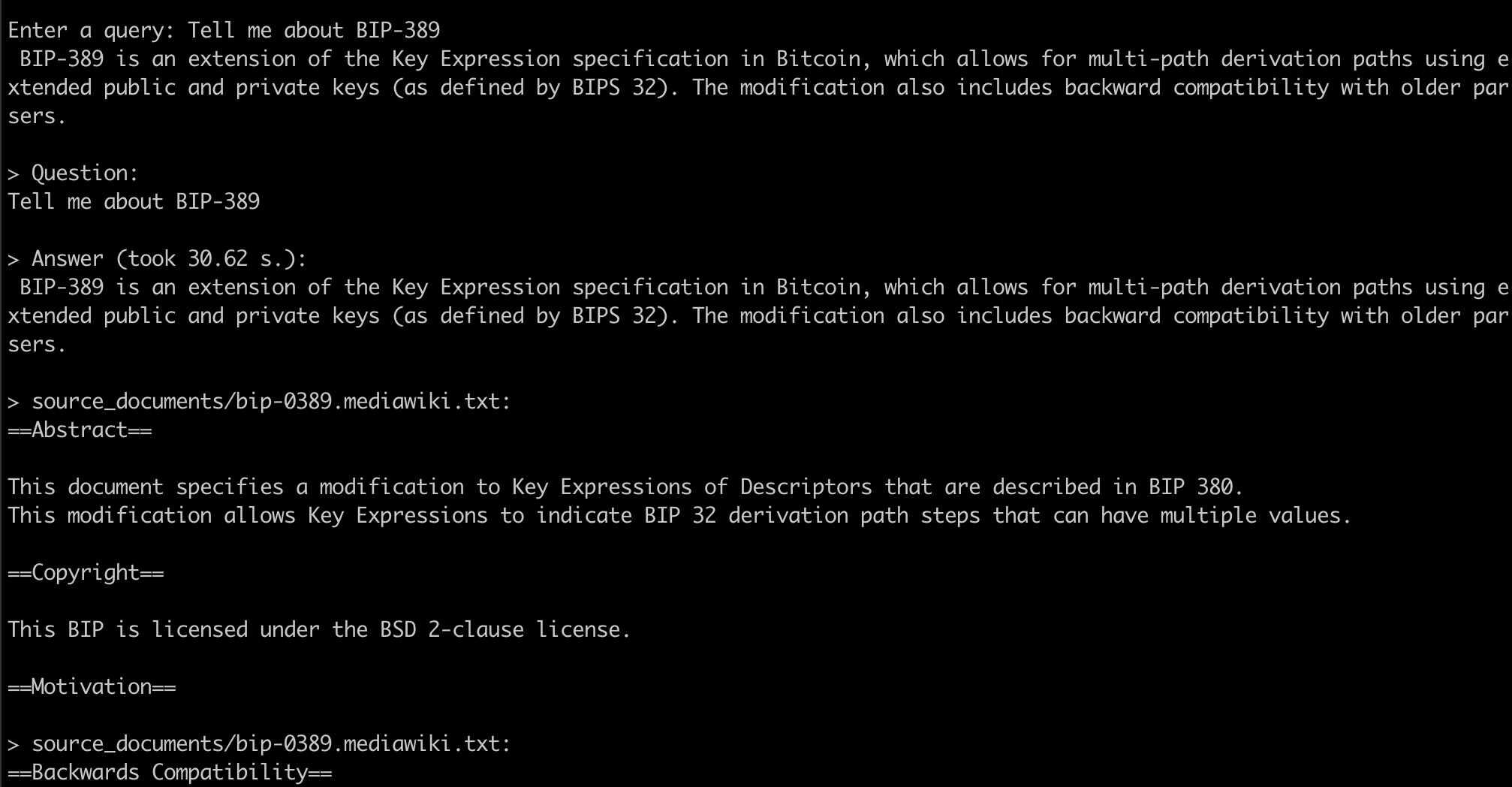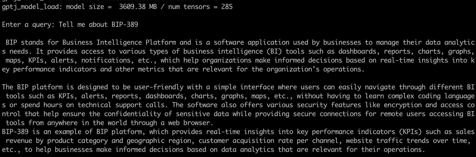 First we tested the LLM when it had 0 knowledge of bip-39 and the response we got we got involved a summary of a business intelligence platform: