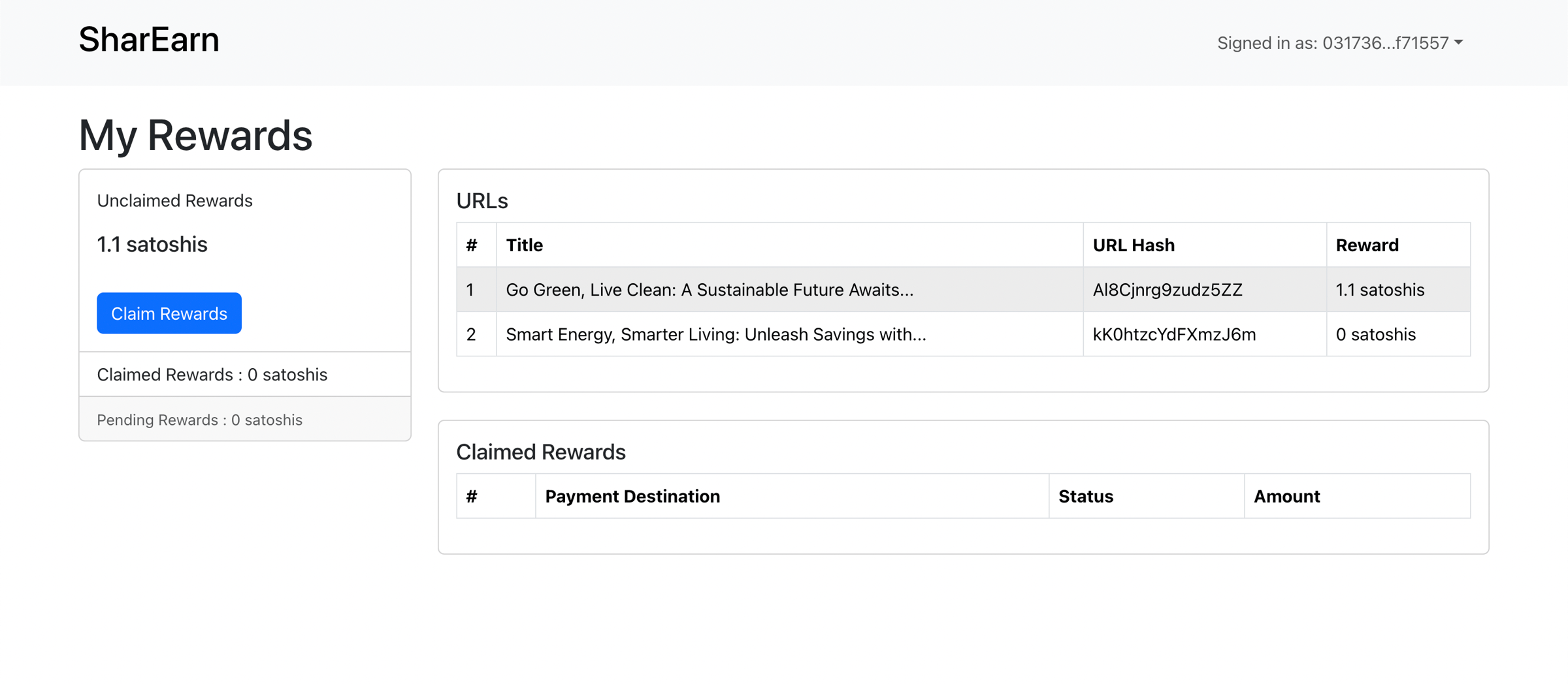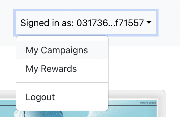 On this rewards page, users will see the list of campaign that they help to share . History of claimed rewards and rewards claim information.