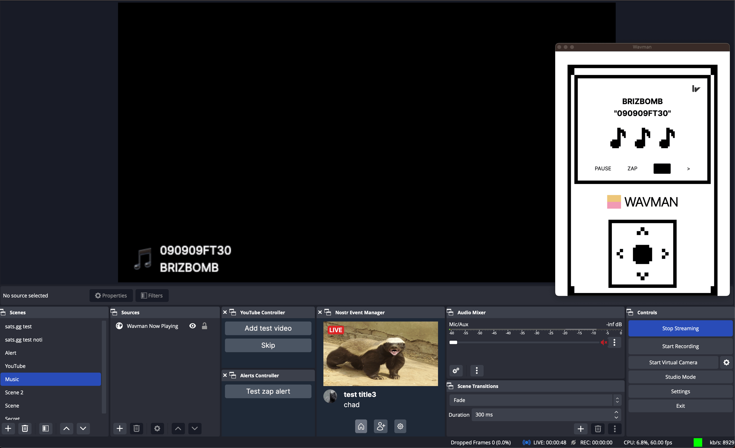 To demonstrate the power of this I hacked Wavman into Streambrah.